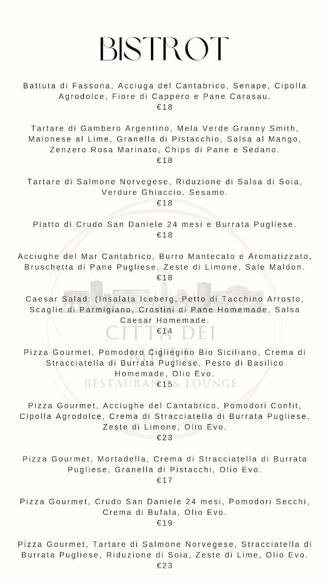 As the reviews reflect, diners appreciate the expertise of the chefs and the overall amiable service. Citta Dei Mille is not just a restaurant; it’s an experience you’ll want to return to, where every plate tells a story of passion and dedication.