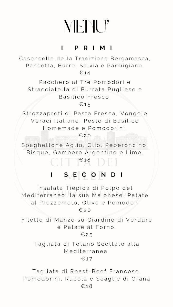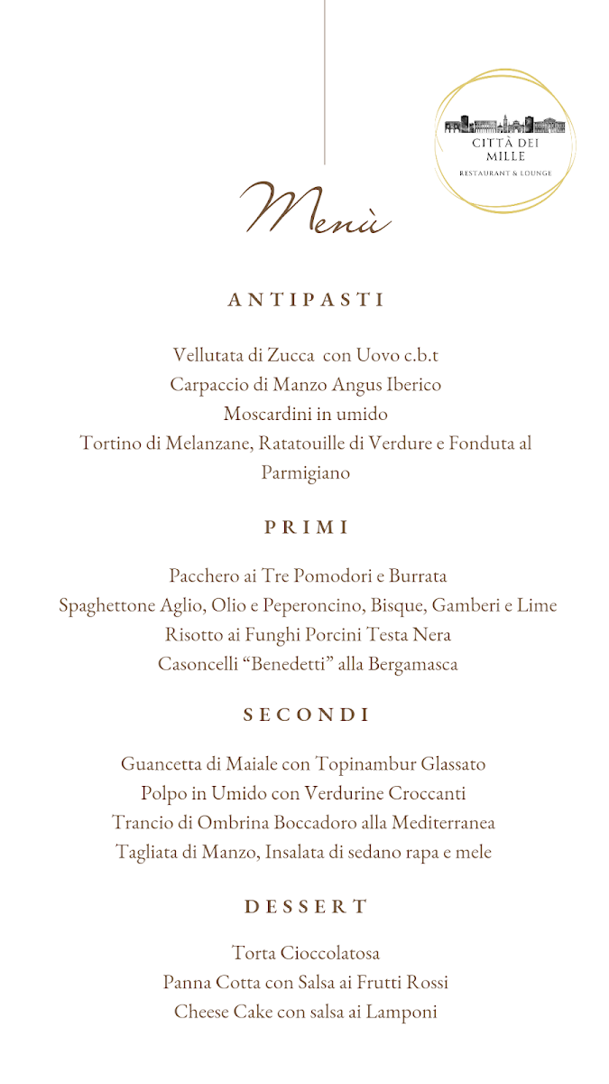 Welcome to Citta Dei Mille - Restaurant & Lounge, a hidden gem nestled in Torre Boldone, Italy. This charming venue offers an exquisite dining experience, blending authenticity with modern culinary flair. Guests are greeted with a warm atmosphere, perfect for indulgent meals, whether inside or on the inviting terrace.